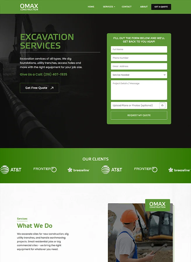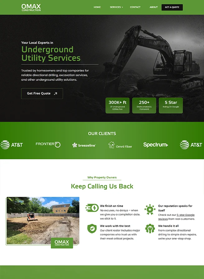 Omax Construction is a local excavation and horizontal drilling company. They didn’t have a website or any photography so we designed them a brand new website, provided the copy and stock photography to get them a website that builds trust with visitors.